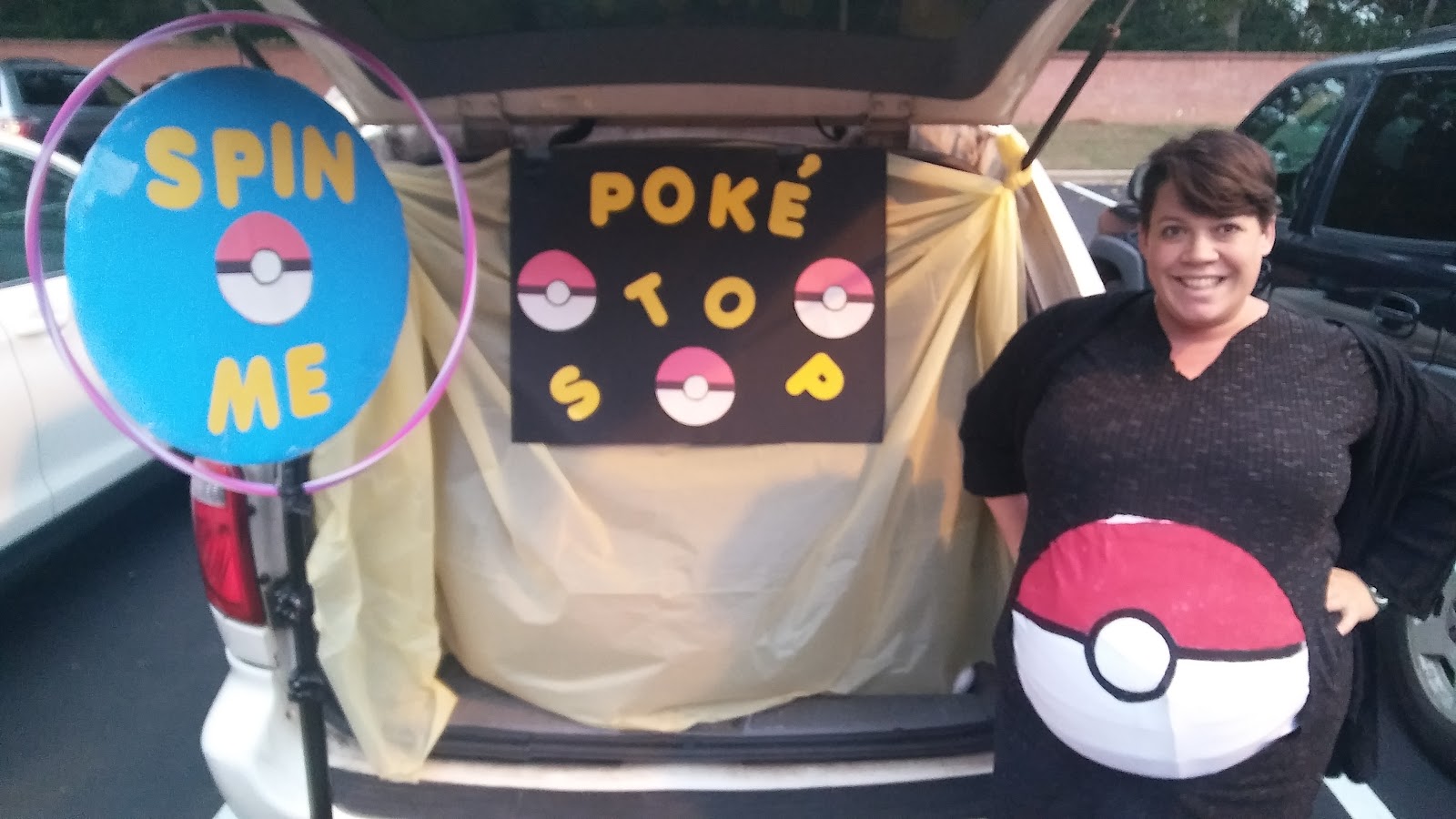Today was our craft fair. We got there around 8am to finish setting up. The fair went pretty well. We made a decent amount of money, and had fun. After the fair was over, we packed up and went home to get ready for the ward trunk or treat. I used my hour between to make the decorations for our trunk. I am dressing as a pokeball for Halloween so I did our trunk as a pokestop, with a real spinner to spin! I handed out the left over pokeballs from Wesley's birthday party instead of candy. It was a hit!