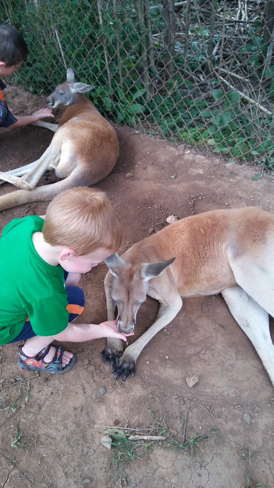 Today started our mammoth cave adventure. We got up, finished packing and headed out by 9am. We headed up to Nashville to have lunch at Sushi Train, a conveyor belt sushi resteraunt. They have an all you can eat lunch Buffett and we all stuffed ourselves silly. I believe between the 10 of us we polished off 97 plates! After we rolled ourselves out of the resteraunt we drove the rest of the way to mammoth cave kentucky. We went straight to "kentucky down under" a small adventure zoo. Since the zoo was situated up on a big hill dad was very kind and rented one of their golf carts for me and mom to drive around so we could participate too. We had so much fun! The kids got to pet snakes, see lemurs, feed kangaroos, emus, and wallabees, see and touch gian tortoises, goats and ponies. We went to see the lorikeets and feed them and the kids loved having them land on their heads! We were all hot and sweaty, it was 100*, and the lorrakeets thought we made great salt licks. They also have a small cavern on the property. It was a really neat cave. It was a very wet, very active cave. It was also very small but that was good too so i could do it without problems. After we explored the park we headed over to the mammoth cave park to check into our cabin. The cabin was nice enough, basically 4 bedrooms connected by 2 baths. The only downside was that their was no air conditioning, which normally wouldnt be too much of a problem, but since the temp was 97 and the feels like temp was 105-109 it was a bit of a struggle for this pregnant lady. Dad was kind enough to bring a fan for my bedroom so i didnt completely melt. After we unloaded the cars, dad, jon, and kristy headed off to a candlelight tour of the caverns . mom and i fed the kids and put them to bed. It was a good, but hot first day of vacation.